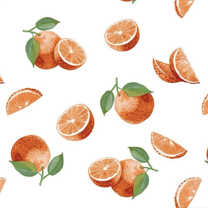 Tejido con un diseño frutal vibrante y alegre, protagonizado por ilustraciones detalladas de naranjas enteras y sus gajos. Los tonos anaranjados y los toques de verde en las hojas aportan un aire fresco y veraniego que llenará de vitalidad cualquier proyecto de decoración, desde manteles hasta accesorios de cocina y del hogar.
