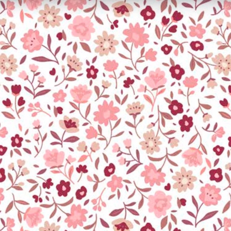 Este diseño evoca la belleza de la primavera con un encantador estampado de flores y hojas en tonos de rosa y rosa claro que se distribuyen de forma armoniosa sobre un fondo blanco. Es la opción perfecta para quienes buscan una estética suave y natural.