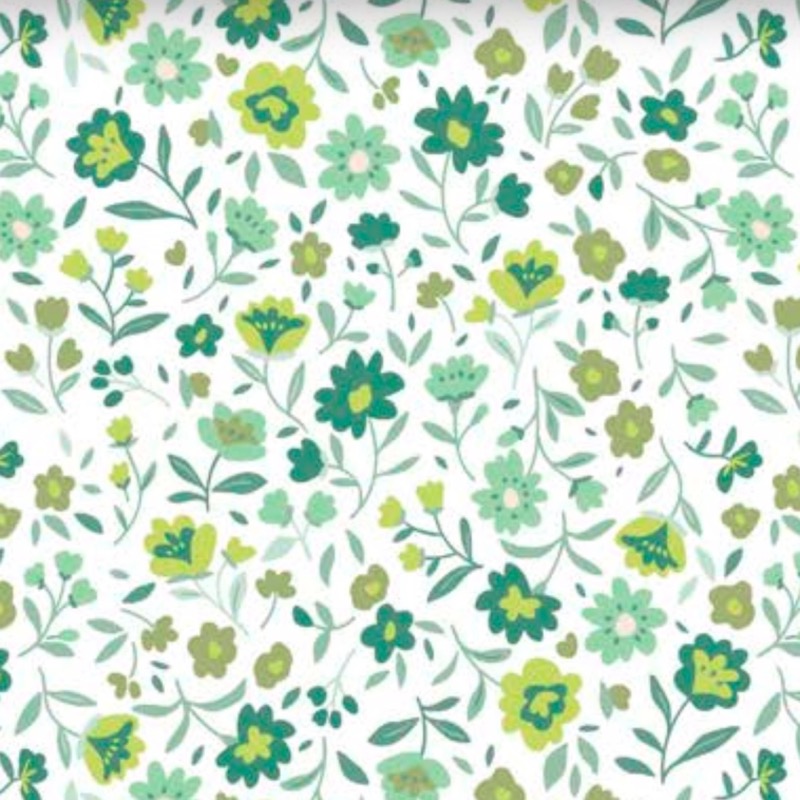 Este diseño evoca la belleza de la primavera con un encantador estampado de flores y hojas en tonos de verde y verde claro que se distribuyen de forma armoniosa sobre un fondo blanco. Es la opción perfecta para quienes buscan una estética suave y natural.
